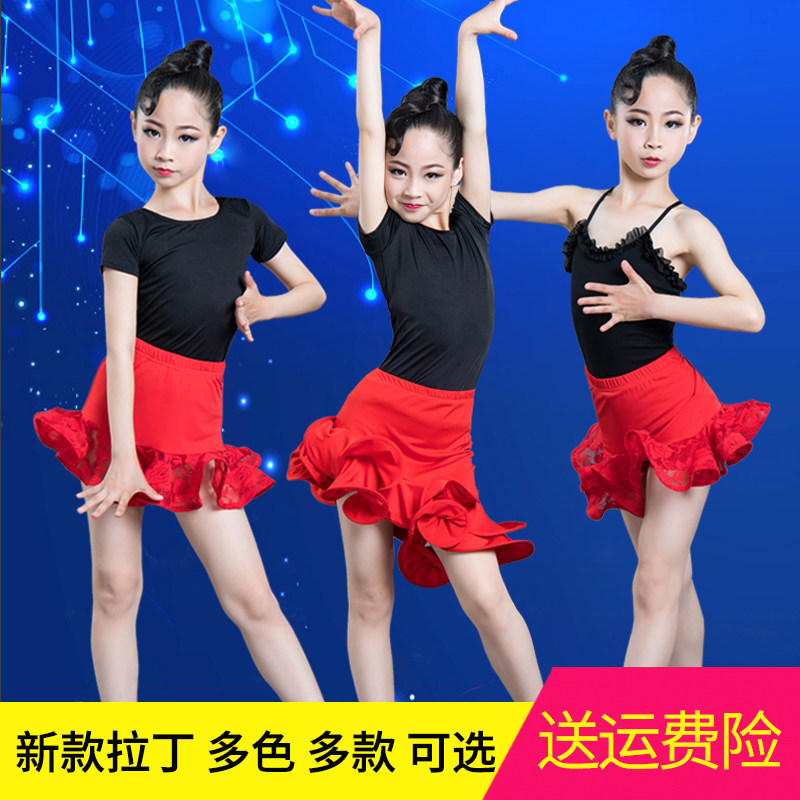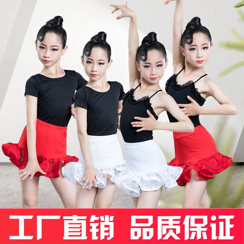 Girls Latin dance clothes short-sleeved spring and summer children's dance practice clothes competition performance regulations clothing Latin dance skirt
