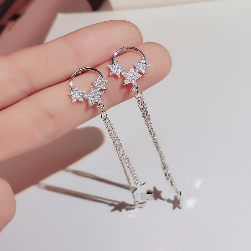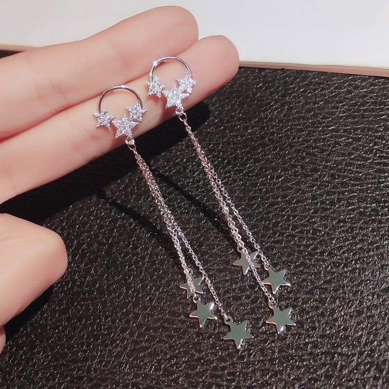 Pentagonal star earrings 2022 new wave length version of minimalist earrings Ear Stitch Female Silver Needle Mesh Red East Gate Earrings