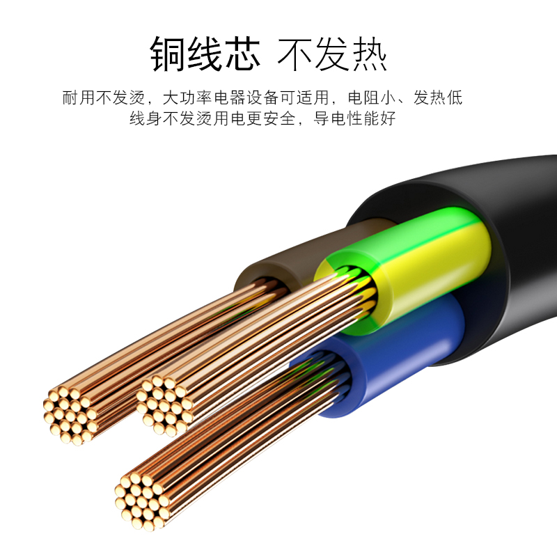10A pure copper national standard power cord 0 75 1 1 5 squared three-core triple hole with plug power cord 1 5 2 3 m
