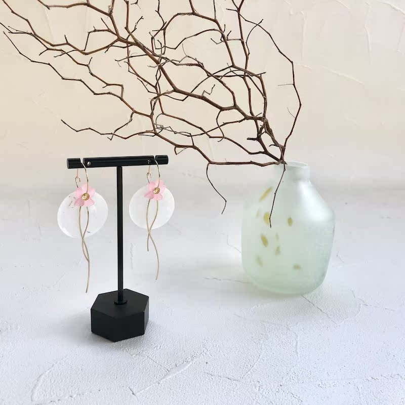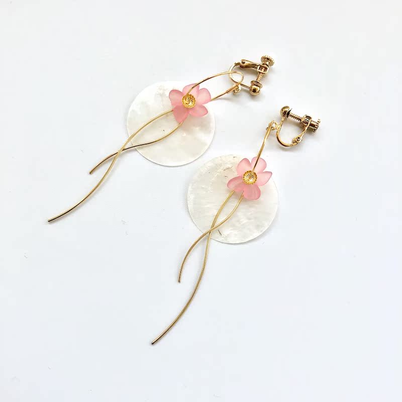 01 white ear ring with 02 white ear clip with 03 pink ear clip 04 pink ear clip
