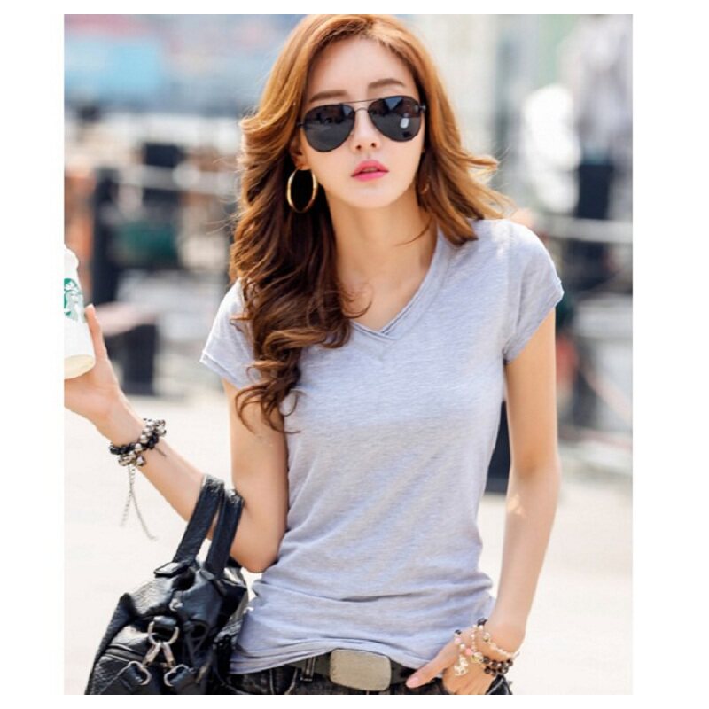 South Korea 2022 Summer new short sleeve T-shirt woman V collar display slim cut undershirt Bamboo cut cotton Jane about 100 Loose Jacket