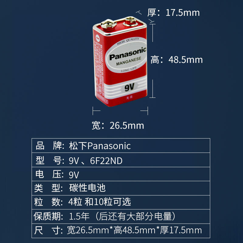 Panasonic 9v ten-cell battery carbon square 6f22nd nine-volt smoke sensor Taylor electric box Guitar pickup 6f22 infrared meter smoke alarm wireless detector rectangle