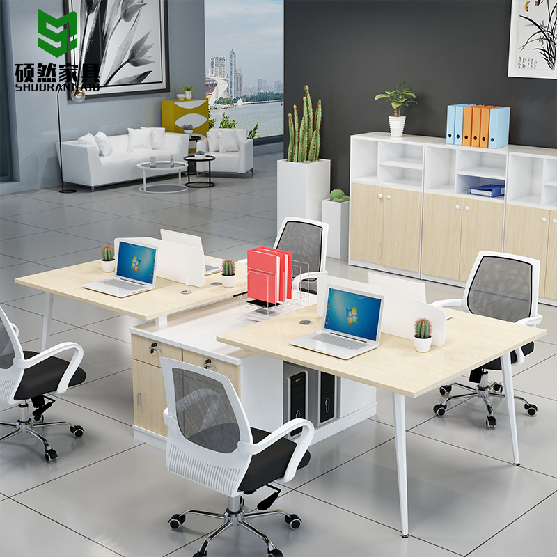 Staff Desk Chair Composition 4 Persons Office Table Furniture Station Table Double Screen Brief desk-Taobao