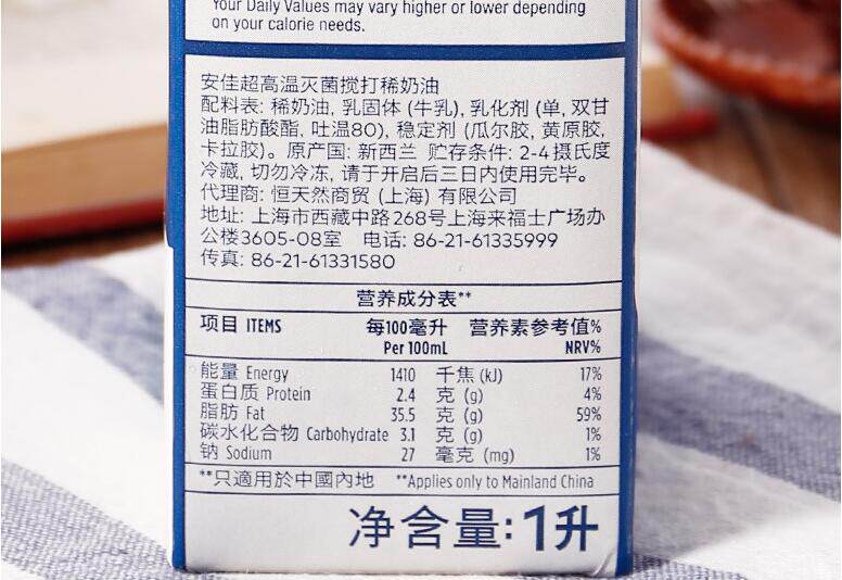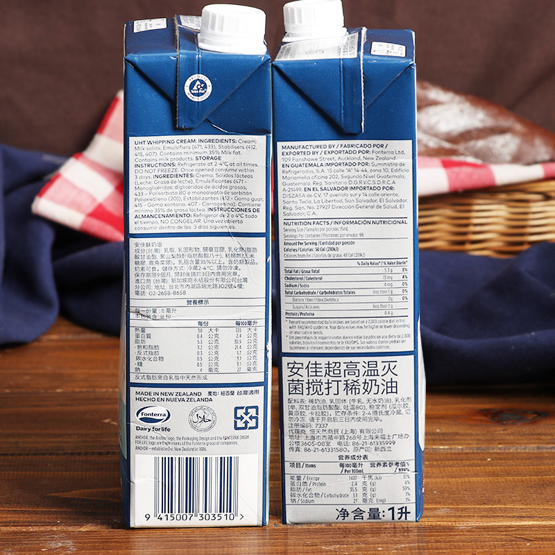 (Anja Light Milk 1L* 3 bottles) New Zealand Animal Lean Cream Cake Framed Egg Tarts Baking Raw Material-Taobao