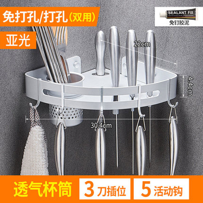 Perforated black space aluminum wall corner triangular multifunctional kitchen knife rack corner rack chopstick cylinder