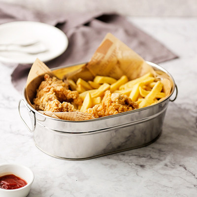 Silver oval seafood fried chicken plate 22cm natural color round snack plate black mini double-eared ice bucket red mini double-eared ice bucket silver double-eared round plate black double-eared round plate red double-eared round plate black