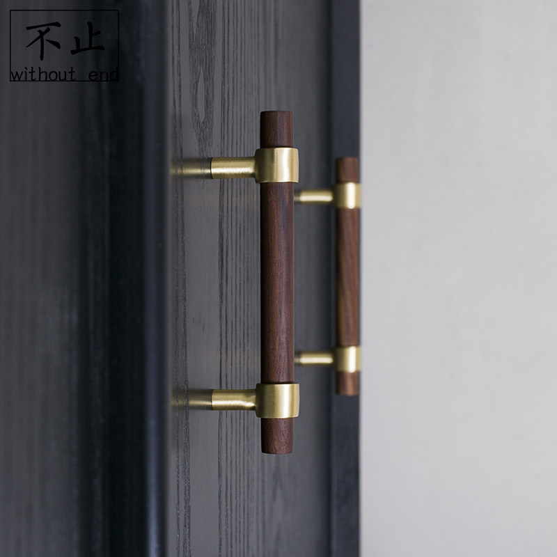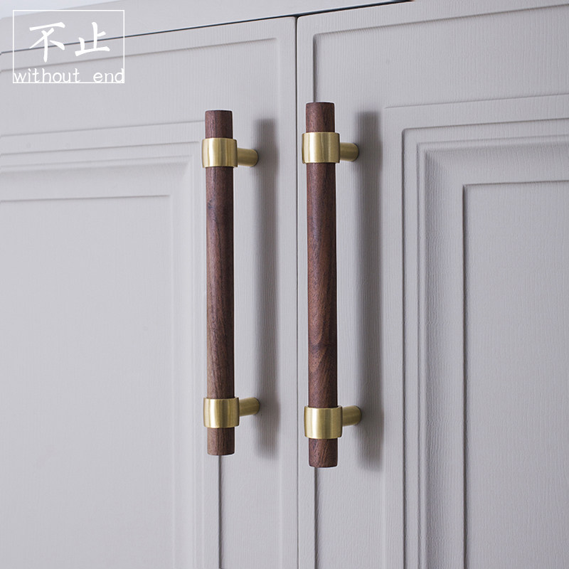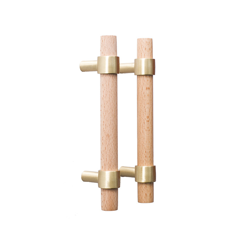 Original design Nordic walnut beech brass handle furniture cabinet closet door double hole American long handle