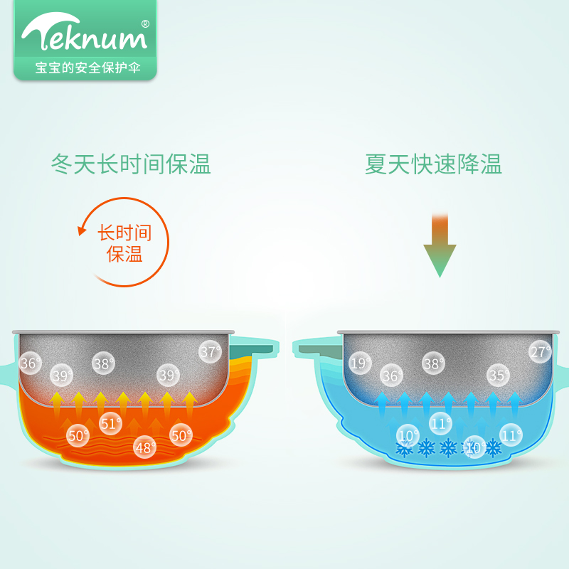 Teknum children's tableware set infant water injection insulation bowl baby non-staple food bowl stainless steel anti-fall suction cup bowl
