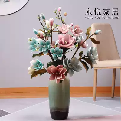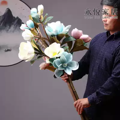 Yongyue home PU feel big magnolia simulation flower high Branch floor flower arrangement Chinese living room porch decoration fake flower