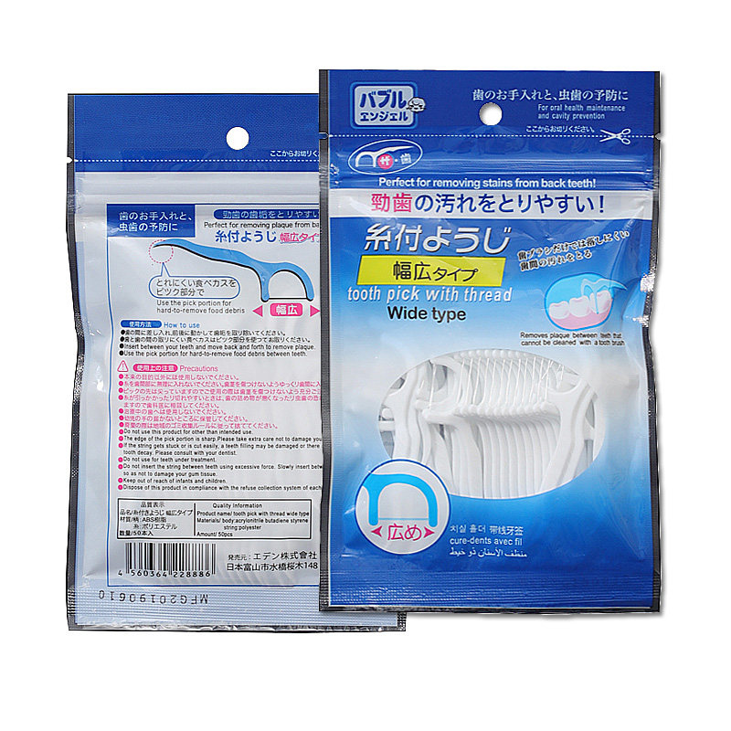 Japan's KM ultra-fine dental floss stick ultra-fine family-packed portable household disposable fine-slip toothpicks 50 bags