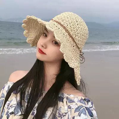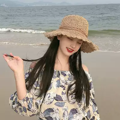 Bowknot straw hat female summer hipster foldable beach hat seaside hat female sunshade sun sun hat