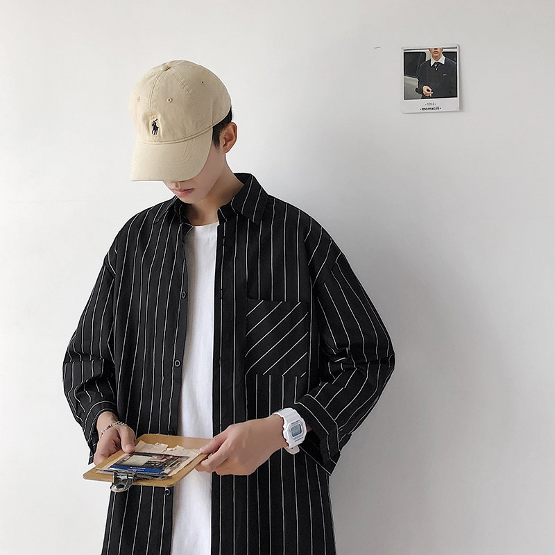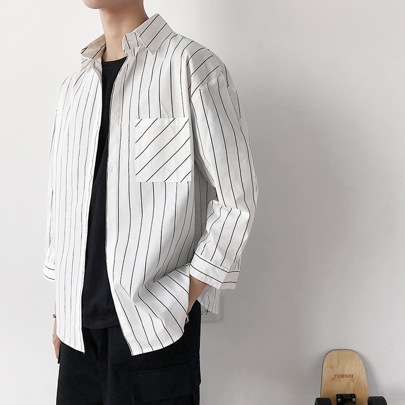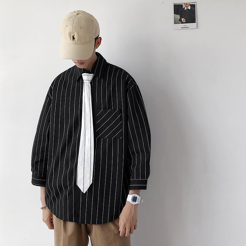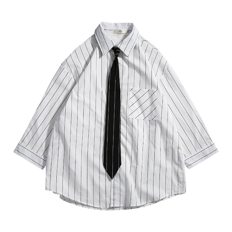 Summer Student Han version Body Vertical Stripe 7 70% Sleeves White Shirt Trend Short Sleeve Shirt Suit Man Handsome 100 lap