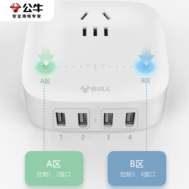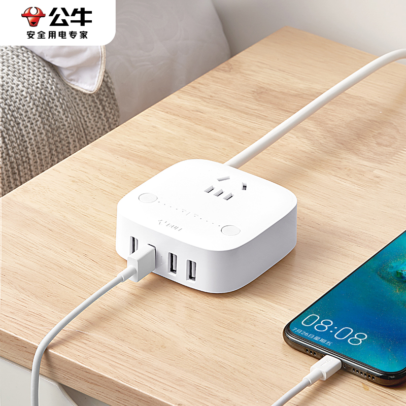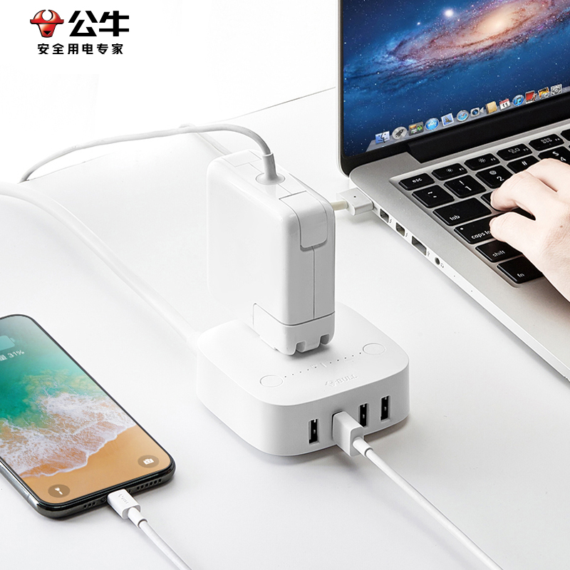 Bull charging head multi-port socket anti-overcharge usb Rubik's cube timing extension cord switch mobile phone charging plug-in board