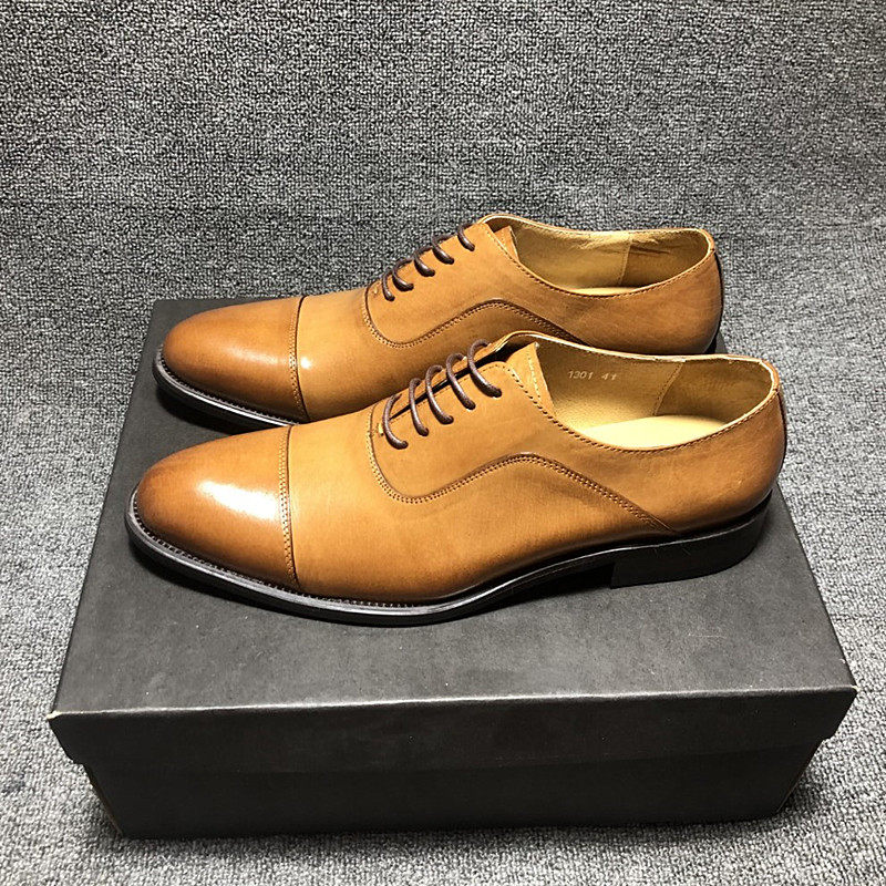 Three Joints Derby Men's Shoes Brief High-end Yingren Genuine Leather Business Positive Dress Leather Shoes Oxford Pointed Shoes Man Tide Shoes
