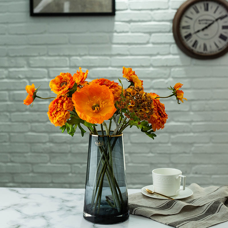 Light luxury depiction gold glass vase transparent Nordic simple living room creative dining table lily arrangement hydroponic ornaments