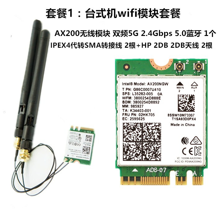 Single NIC NIC + Built-in Antenna NIC + Adapter Line + 2DB NIC + Adapter Line + 2DB + Bezel NIC + Adapter Line + 6DB NIC + Adapter Line + 6DB + Bezel NIC + Adapter Line + ASUS AC Antenna NIC + Adapter Cable + ASUS AC antenna + bezel network card + adapter line + Lenovo magnetic antenna network card + adapter line + Lenovo magnetic antenna + bezel network card + adapter line + Intel antenna network card + adapter line + Intel antenna + bezel network card + adapter line + adapter line + foldable antenna network card + adapter line + foldable antenna + Bezel AX200 desktop with AC68 antenna AX200 desktop with AC88 antenna AX200 desktop with Lenovo magnetic antenna AX200 desktop with Intel antenna AX200 desktop with foldable antenna