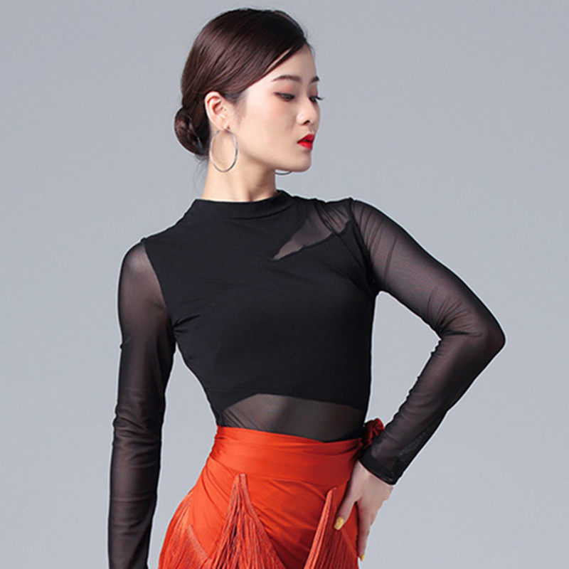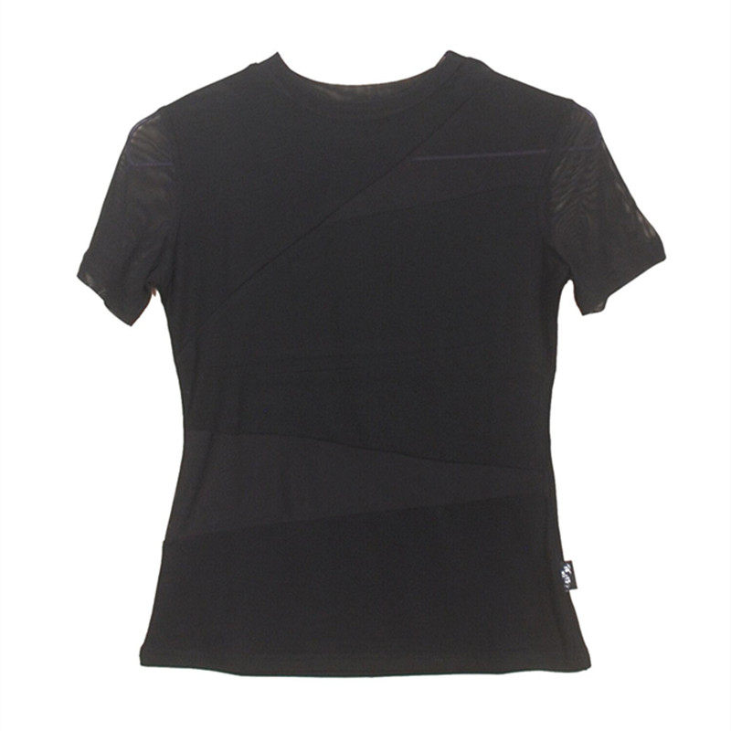 Dancer round neckline with Moden dance mesh yarn splicing Latin dance short sleeve blouses for body dancing women's national standard new
