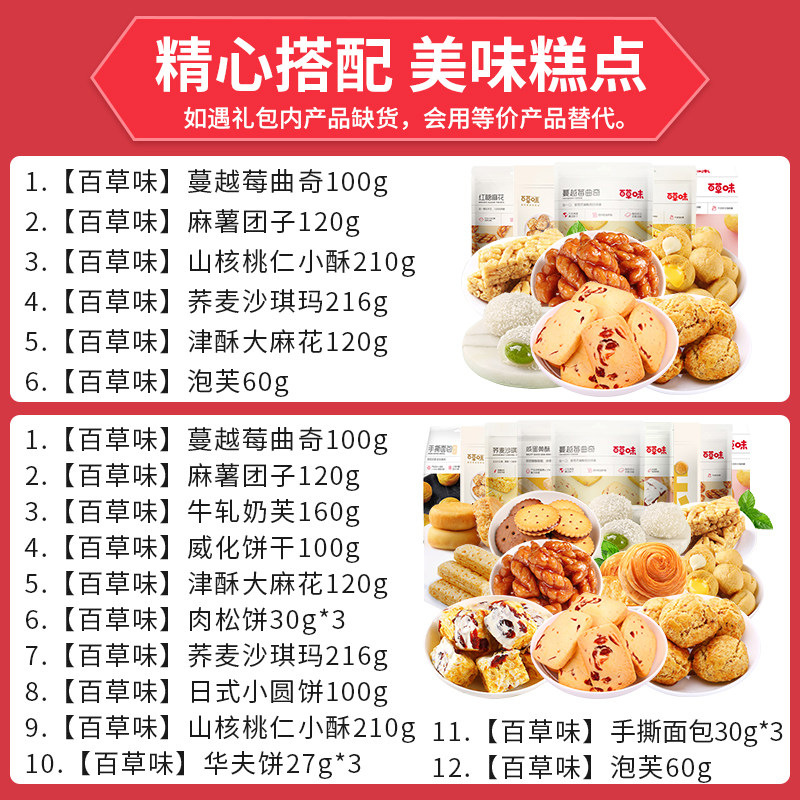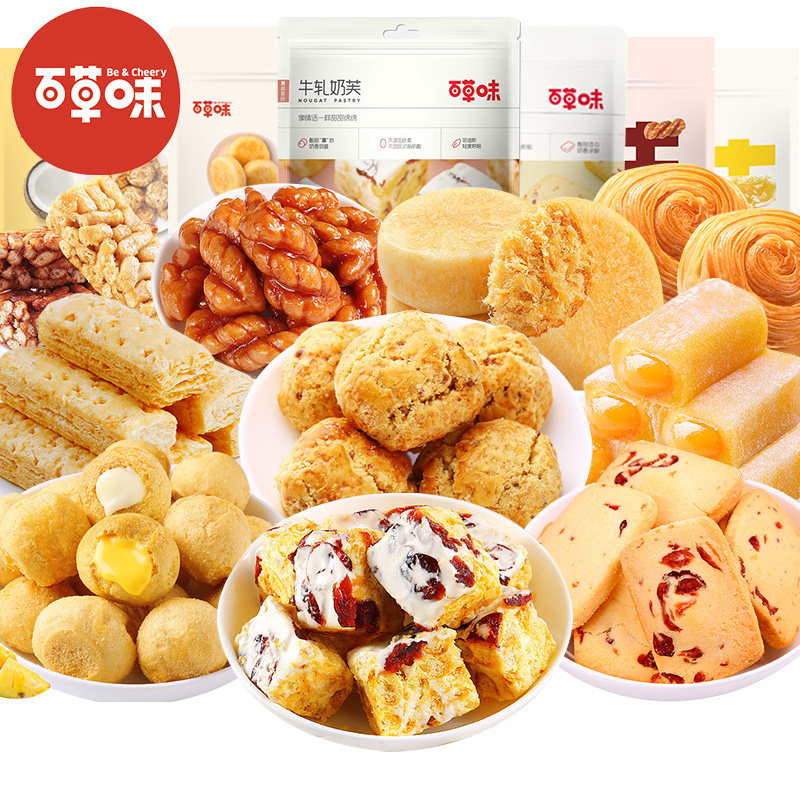 Baicao snacks big gift bag pastry bread whole box biscuit cake breakfast fast food lazy food hunger supper