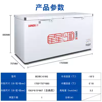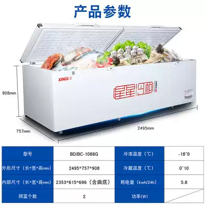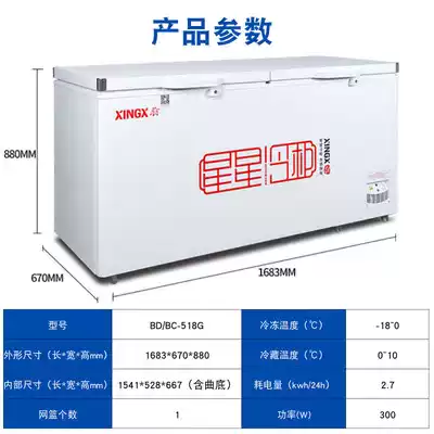 Star horizontal commercial freezer 518 liters 718 liters refrigerated and frozen ultra-large capacity freezer Copper tube refrigeration tube refrigerator