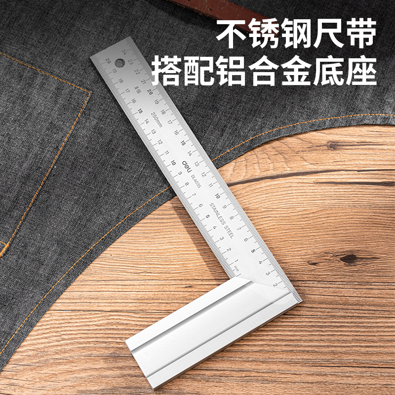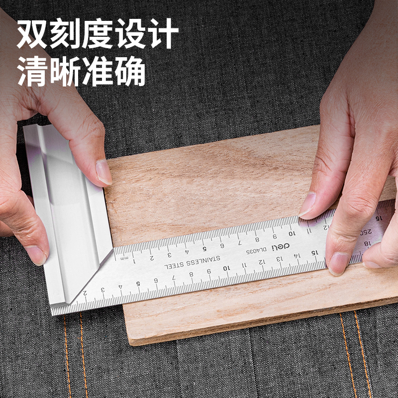 Del tool steel angle ruler straight angle ruler double scale angle ruler 90 degree ruler L type woodwork ruler wide seat Square ruler