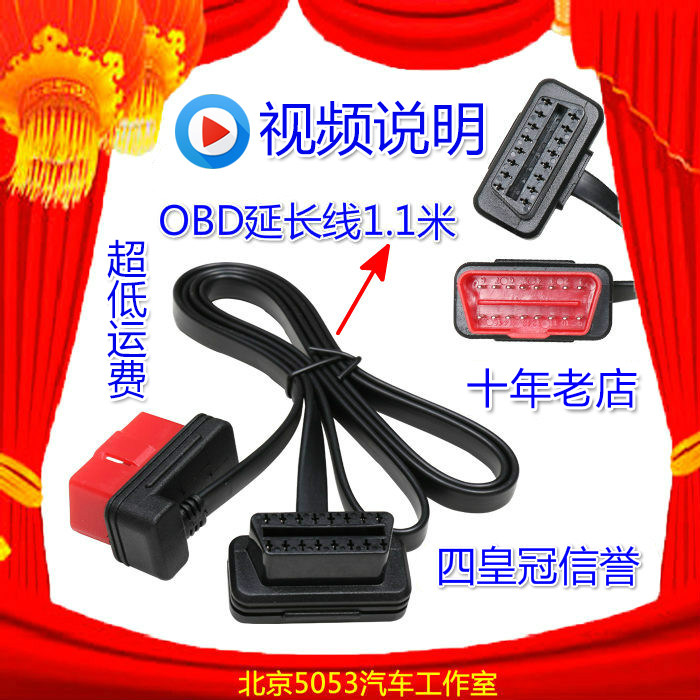 OBD2 extension cable Automotive OBD extension cable Ultra-long male to female elbow GPS noodle line extended flat line obd2