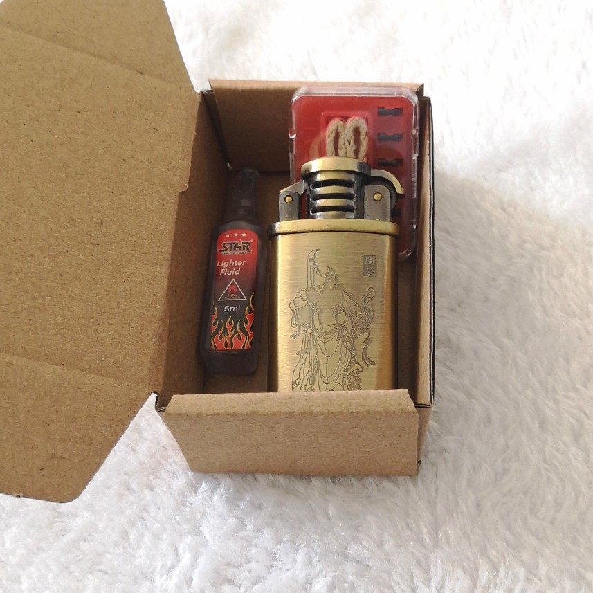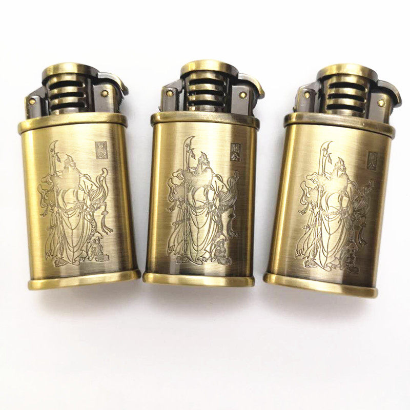 New old-fashioned metal kerosene windproof lighter Men's trendy Guan Gong bronze gift box 691