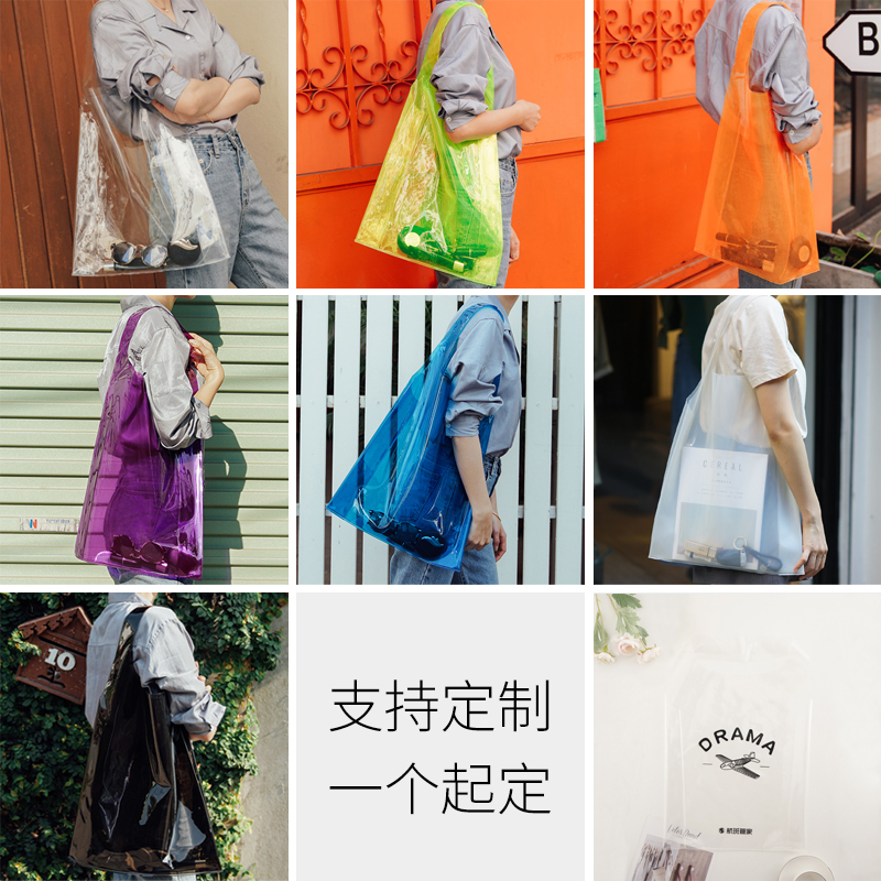 Transparent bag PVC portable plastic ins clothing shopping activity advertising gift bag custom logo