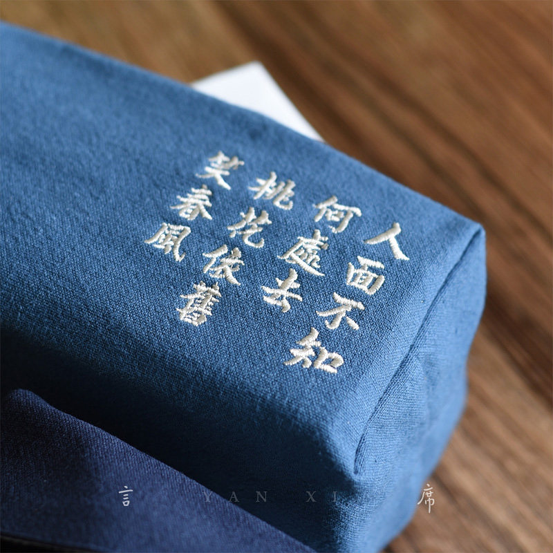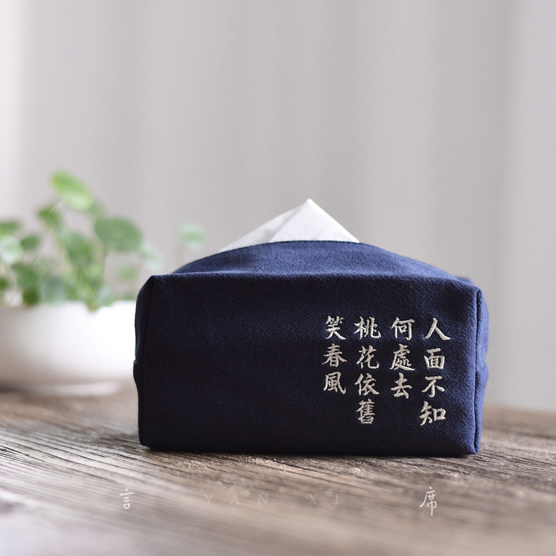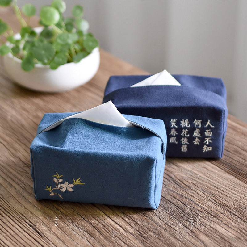 Creative folk paper towel box cloth art cover living room napkin box containing pendulum piece of paper cloth bag Peach Blossom Embroidered custom-Taobao