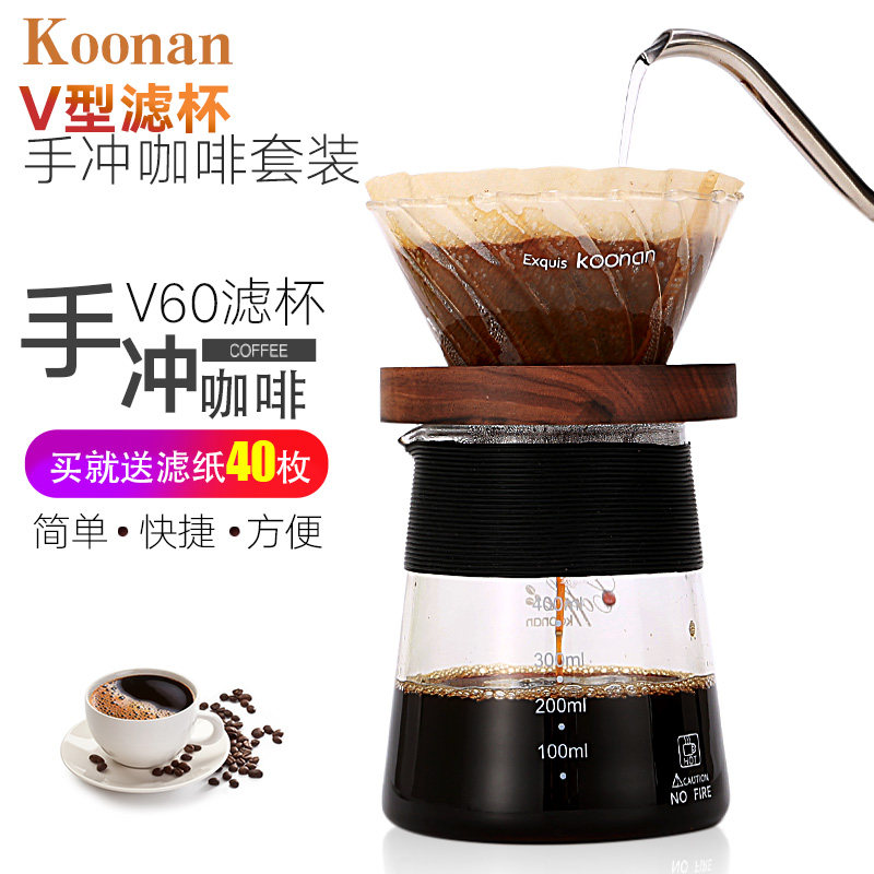 V02 ceramic filter cup (coffee color) + glass sharing pot (400ml) _ send 40 pieces of filter paper