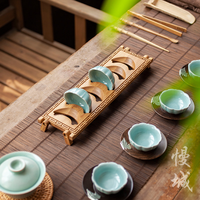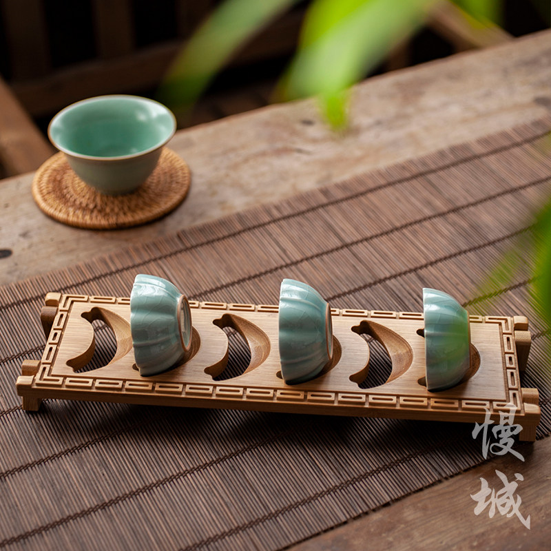 Tea Cup Holder Ebony Bamboo Cup Holder Accessories Kung Fu Tea Set Tea Ceremony Spare Parts Household Solid Wood Storage Leakage Cup Holder