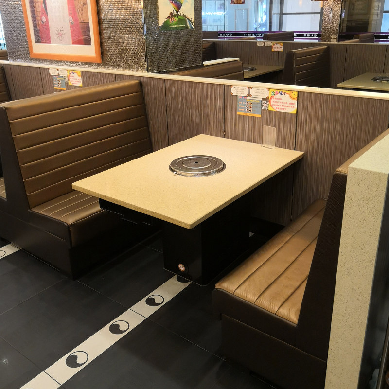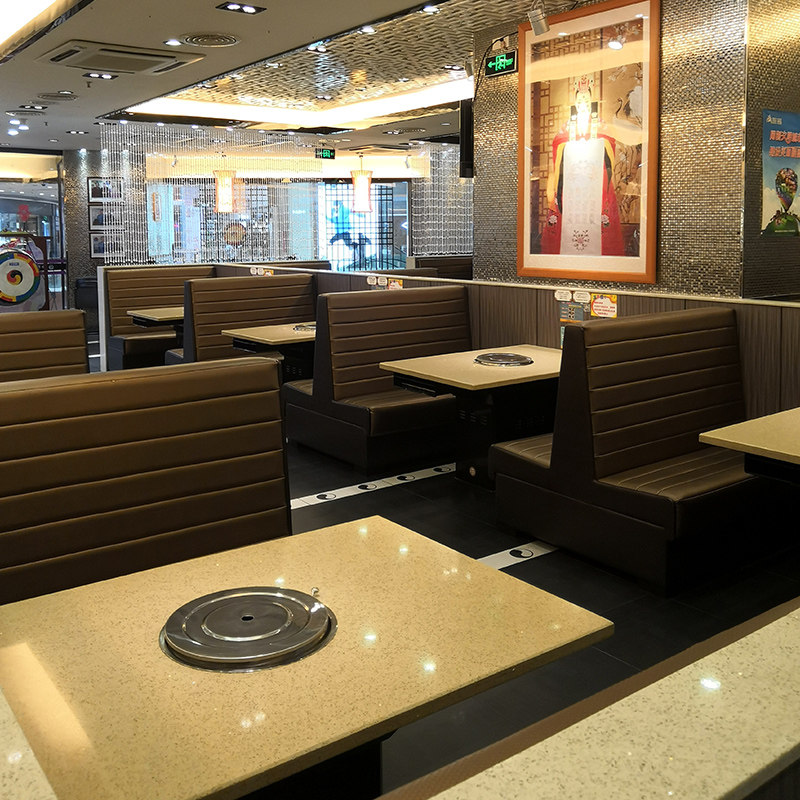 Card seat sofa restaurant tables and chairs Korean barbecue restaurant tables and chairs sofa custom marble barbecue smokeless hot pot table