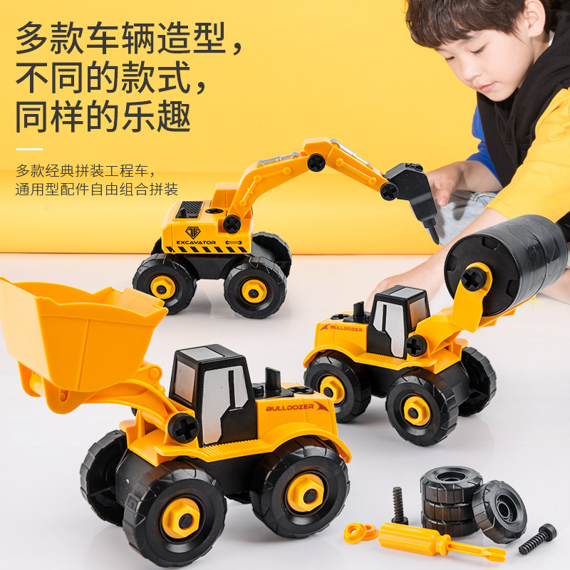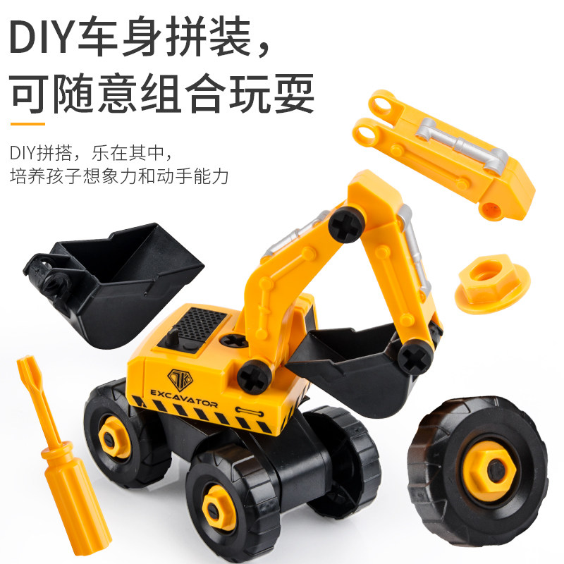 Children's removable engineering vehicle toy screw disassembly car excavator Yizhi assembly toy car manual screw