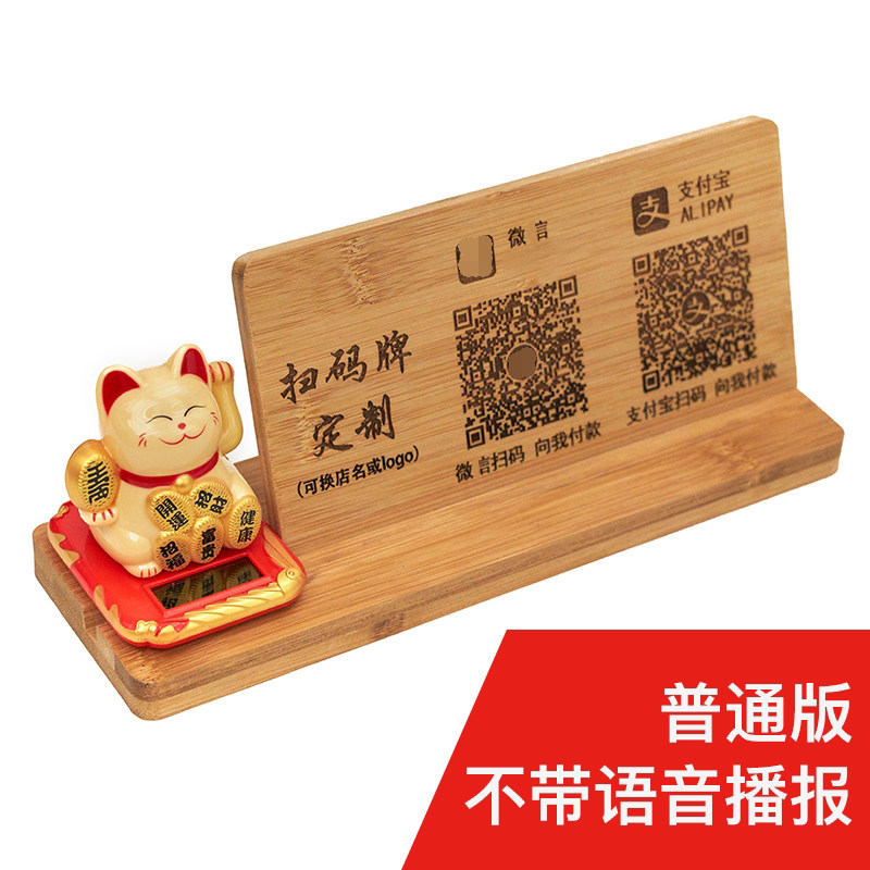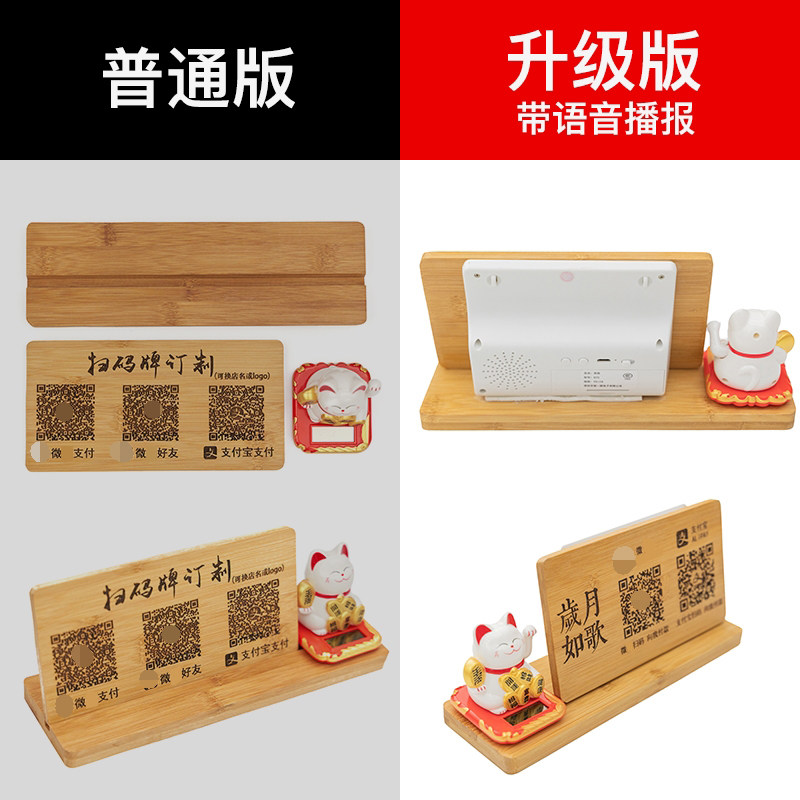 Two-dimensional code sweeping code card WeChat Alipay Pay payment card solid wood engraved voice report to account tip small sound box