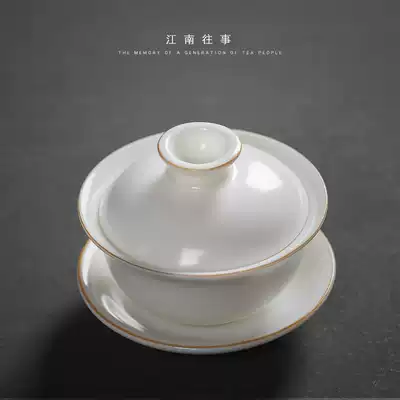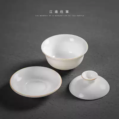 Jiangnan past Sheep fat jade white porcelain Ru Kiln three-cai Gaiwan Three-cai Cup Large ceramic tea set Kung Fu Gaiwan Teacup