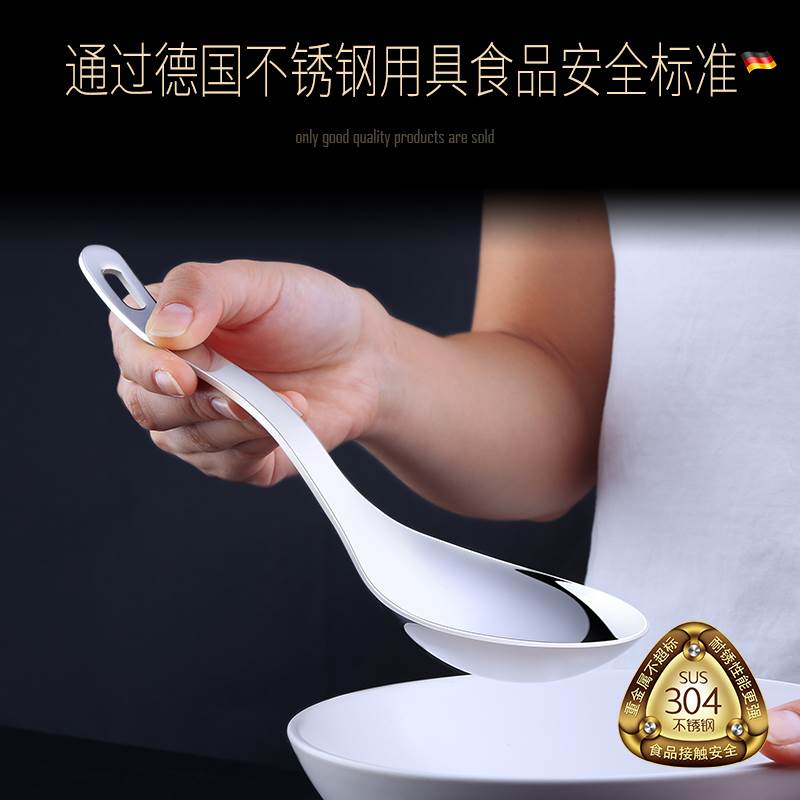 On one side of the water 304 stainless steel soup spoon Household meal spoon large rice spoon porridge spoon Long handle thickened small drink spoon