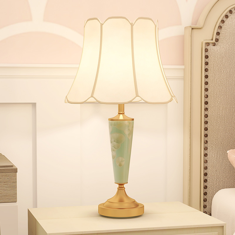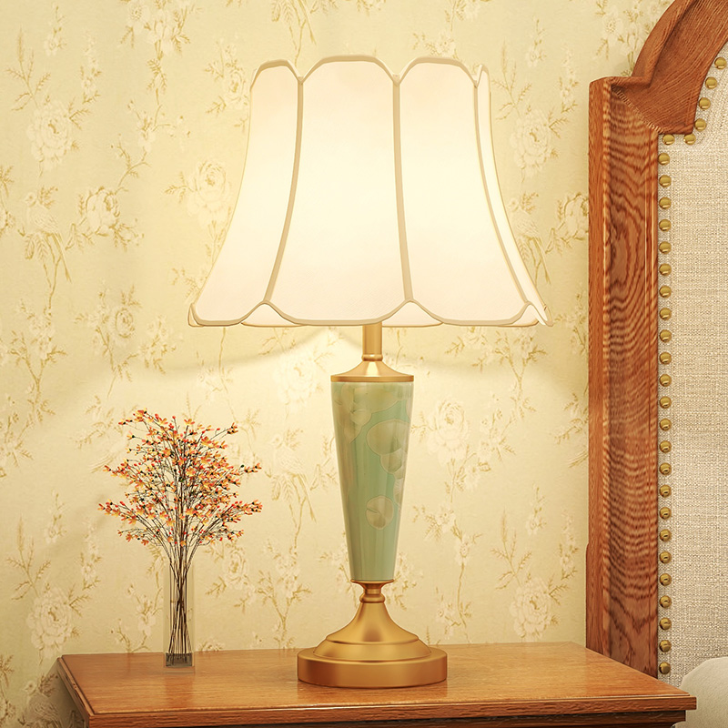 Auberto American Full Copper Ceramic Table Light Bedroom Bedside LED Brief Cozy Creative Personality Decorative Lights