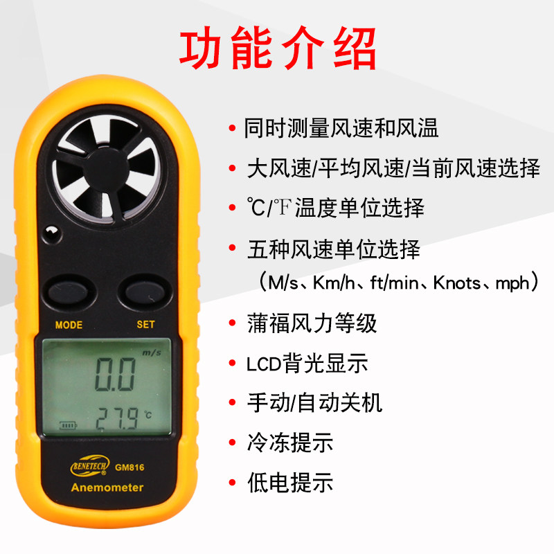 Car digital anemometer anemometer air conditioning outlet wind speed wind temperature temperature measurement anemometer standard wisdom GM816
