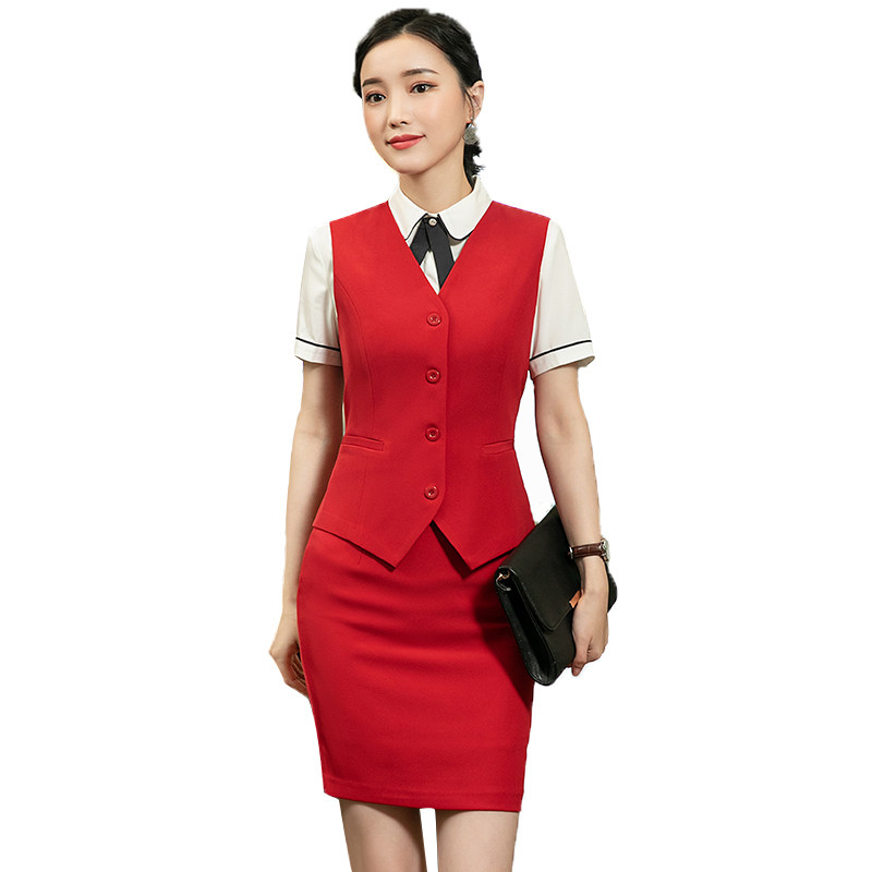 2019 stewardess uniform dress beauty salon work clothes female summer professional dress skirt hotel front desk fashion temperament
