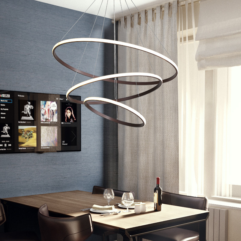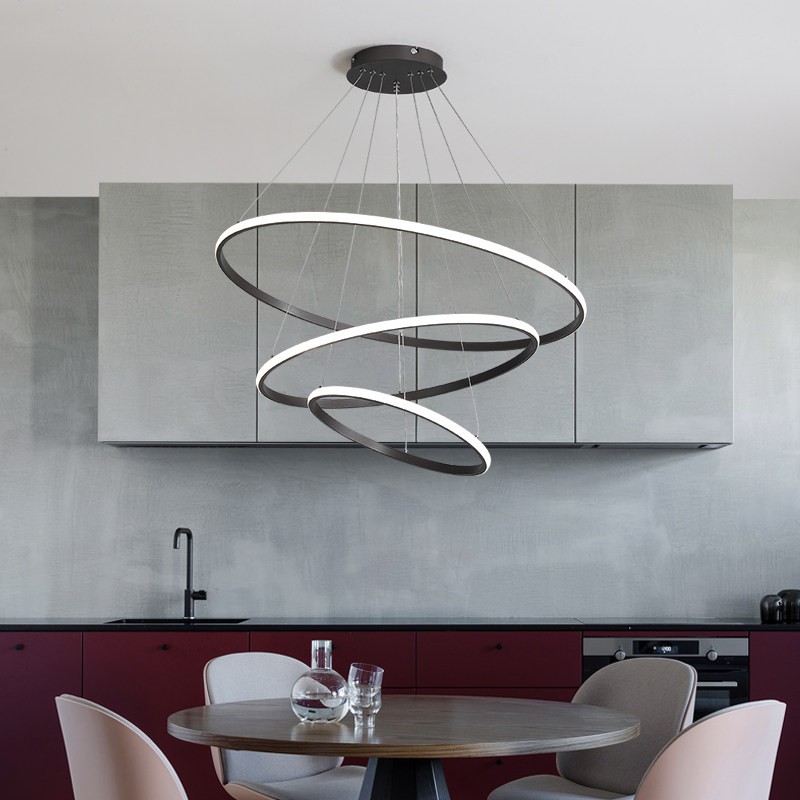 Black-four laps-80cm-Dimmer-Dimmer-Dimmer-Four-Circle-80cm-Tricolor-Tricolor-Iron-Light-Small Three-Circle-Diameter-60cm-Non-Polar