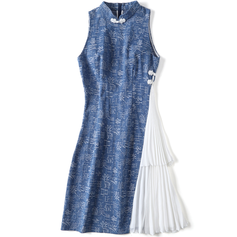 New qipao Summer Daily Short Everyday Short young Elegant Low Collar Girl Wind Sleeveless Vest Improved version of the dress