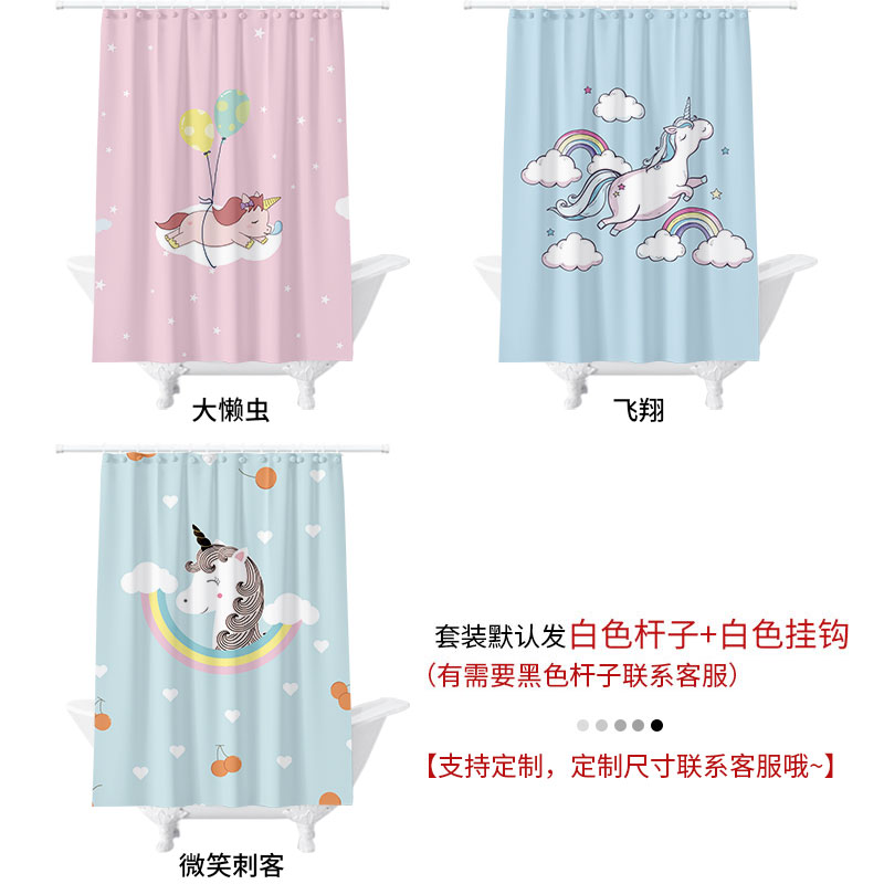 Cartoon shower curtain waterproof cloth set Korean bath thickened mildew blocking curtain Powder room bathroom curtain free hole