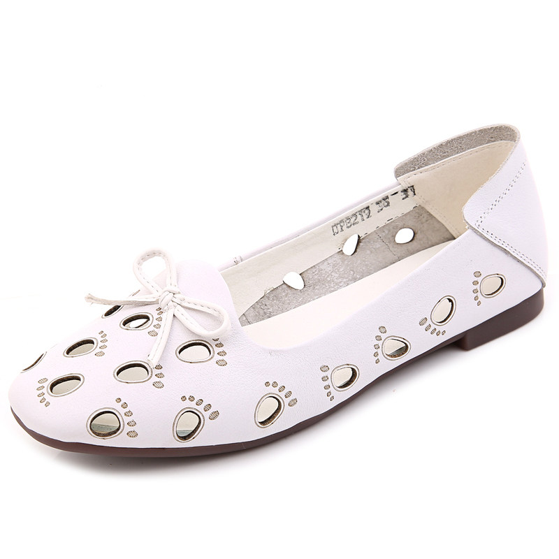 Hollow Shoes 2023 new leather sandals flat bullish solid lady summer mommy shoes leather leather female shoes