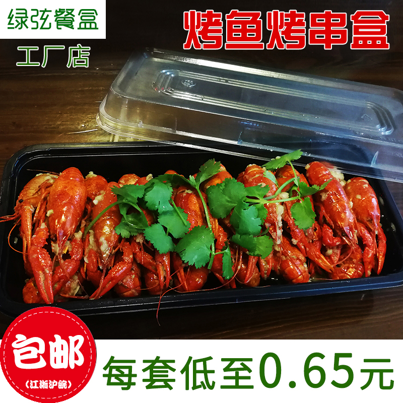 Disposable rectangular plastic with cover supper barbecue fish skewers takeaway special packing box lobster box insulation