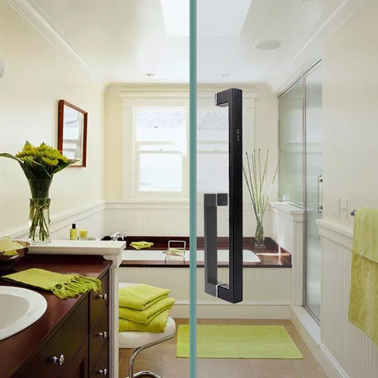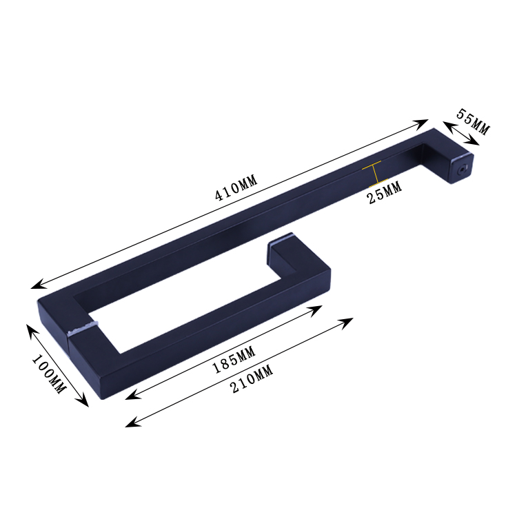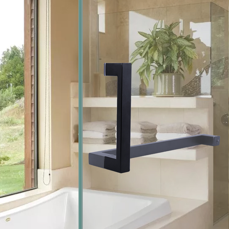 304 stainless steel bathroom glass door handle black frost thickening L square tube transfer door shower room large handle