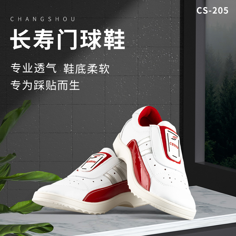 Changshou New Gateball Shoes Neutral PU Leather Red CS-205 Straight Side Sticker Game Comfortable Soft Professional Sports Shoes