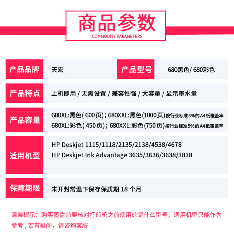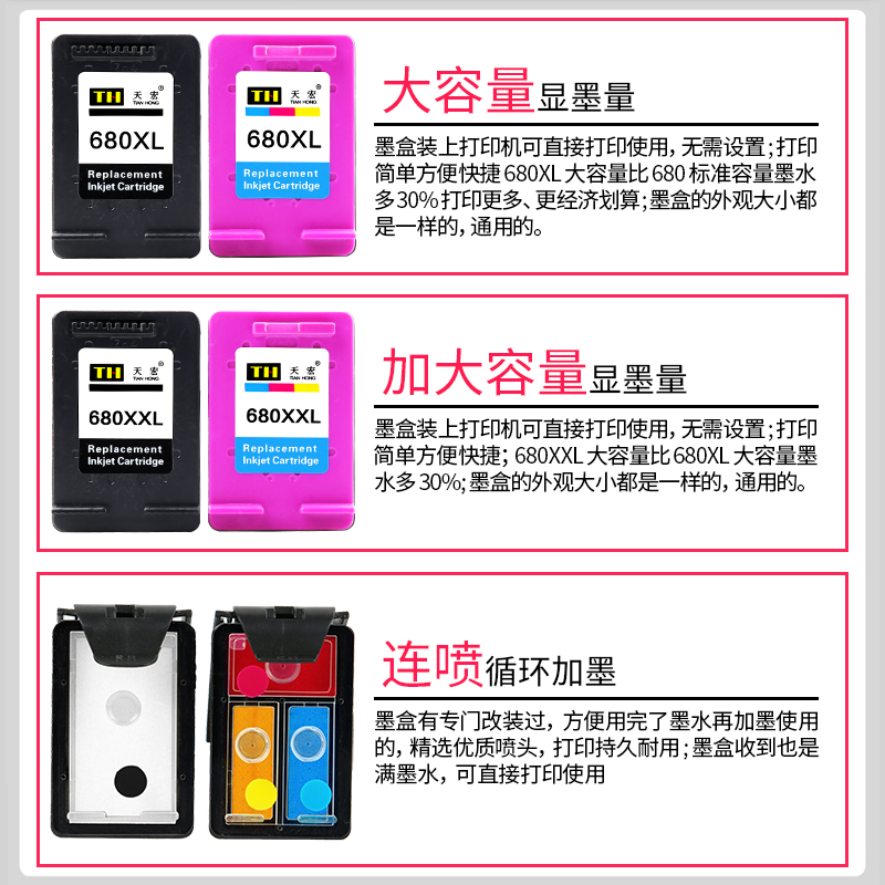 New version 680 black ink cartridge) Large capacity 600 pages New version 680 color ink cartridge)Large capacity 450 pages New version 680 black ink cartridge)Increased capacity 1000 pages New version 680 color ink cartridge) Large capacity 450 pages New version 680 black ink cartridge) Increased capacity 1000 pages New version