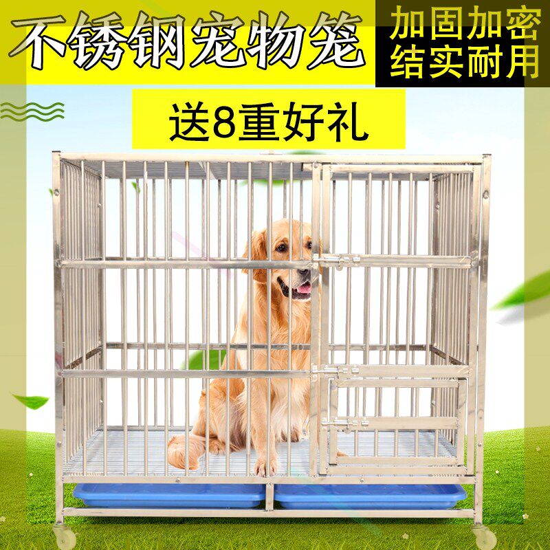 Stainless steel pet dog cage large dog small dog hair plus thicker room with toilet dog cage large number
