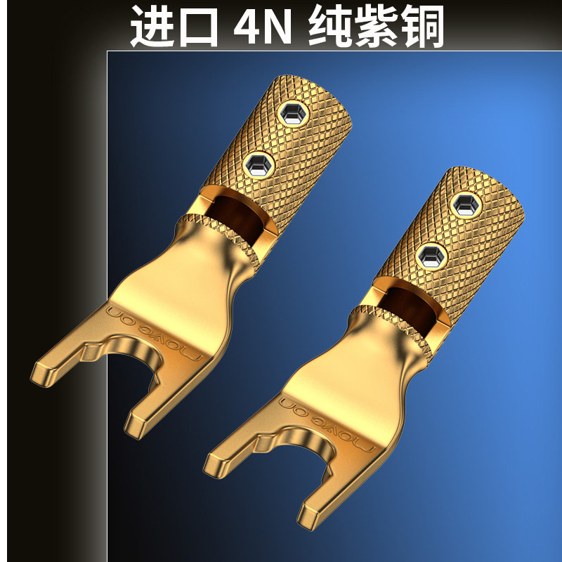 movée on pastoral Y2 red copper plated thick gold sound power amplifier free from welding U shape Y plug horn line speaker wire plug-Taobao