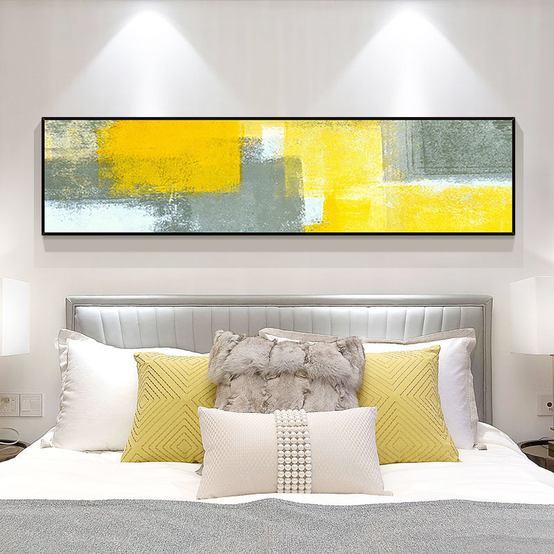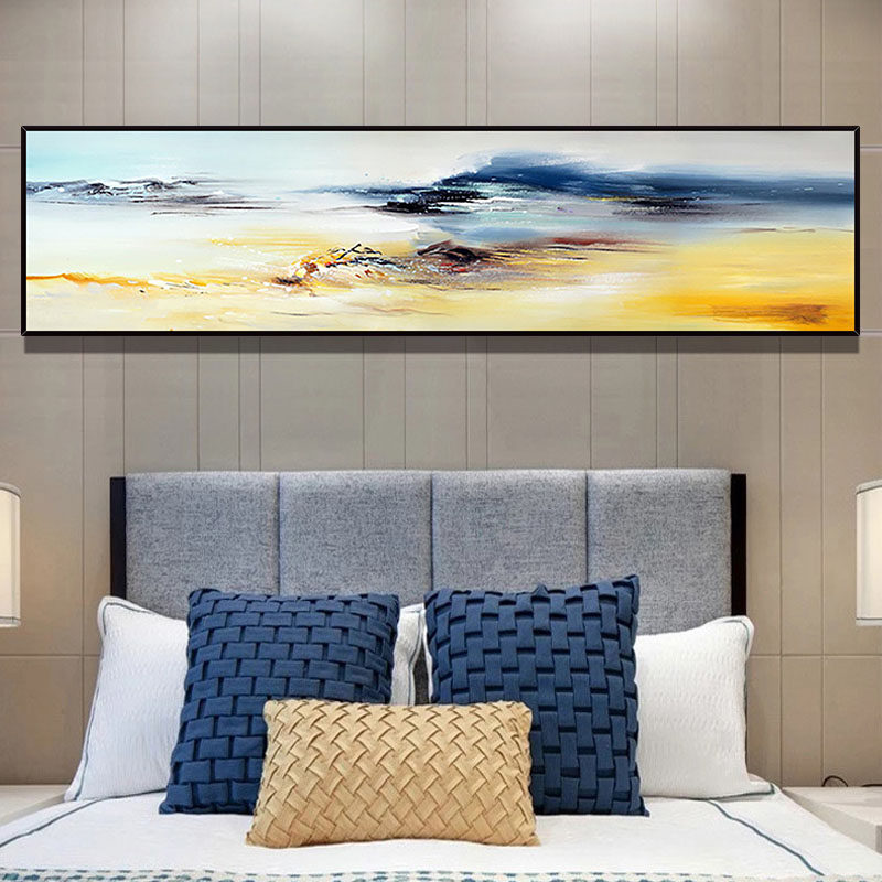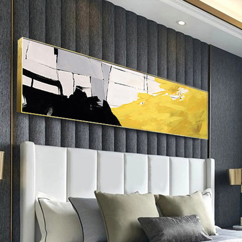 Hand Painted Oil Painting Modern Minimalist Abstract Yellow Art Decoration Painting Autumn Pleasant version Bedroom headboard light and luxurious painting