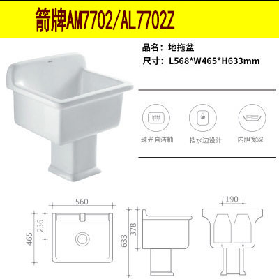 ARROW Arrows Shuffle Mop Pool Balcony Ground Tug Tub Mopping Pool AE7701 02 03 05 Ceramic Mop Pool